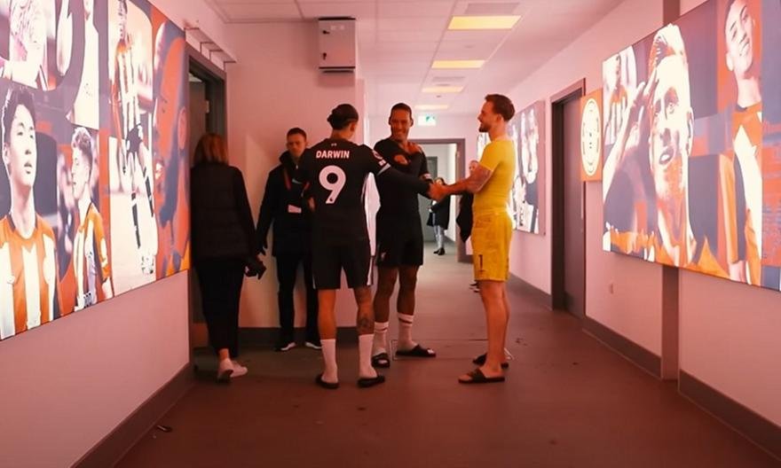 Ο Ντάργουιν Νούνιες έγινε ο ήρωας της Λίβερπουλ την τελευταία στιγμή στη δύσκολη εξόρμηση της ομάδας του στο Μπρέντφορντ. Σκόραρε δις στις καθυστερήσεις για το τελικό 2-0 των «κόκκινων», οι οποίοι βρέθηκαν στο +6 από τη δεύτερη Άρσεναλ μετά τη δική της ισοπαλία (2-2) με την Άστον Βίλα. Ο Νούνιες, έχοντας εισπράξει τη χαρά, τις αγκαλιές και τα πειράγματα των συμπαικτών του, καθώς κατευθυνόταν προς τ' αποδυτήρια του Gtech Community Stadium, πέτυχε τον Φαν Ντάικ και τον Φλέκεν. Δίνοντας το χέρι του στον γκολκίπερ της Μπρέντφορντ ζήτησε συγγνώμη και αυτό έκανε τον Φαν Ντάικ να ξεκαρδιστεί!