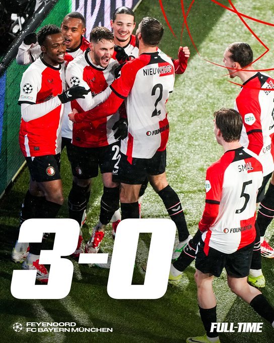 Η Φέγενορντ σόκαρε την Μπάγερν, την κέρδισε με 3-0 και την προσπέρασε στη βαθμολογία! Μάχη θα δώσουν και οι δύο ομάδες για την είσοδό τους στην πρω΄τη οκτάδα.