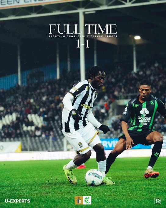Από ένα βαθμό μοιράστηκαν Σαρλερουά και Σερκλ Μπριζ σε αποτέλεσμα που δεν βόλεψε καμία από τις δύο. Στο 12ο λεπτό οι γηπεδούχοι πήραν προβάδισμα με τον Γκιαγκόν ωστόσο στο 35’ ο Σόμερς ισοφάρισε σε 1-1. Από εκεί και πέρα το δεύτερο ημίχρονο ήταν όλο υπέρ των φιλοξενούμενων οι οποίοι δεν βρήκαν γκολ ανατροπής και νίκης. Με δέκα ολοκλήρωσαν την αναμέτρηση οι γηπεδούχοι.
