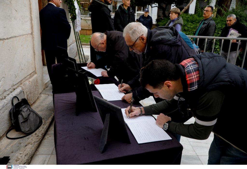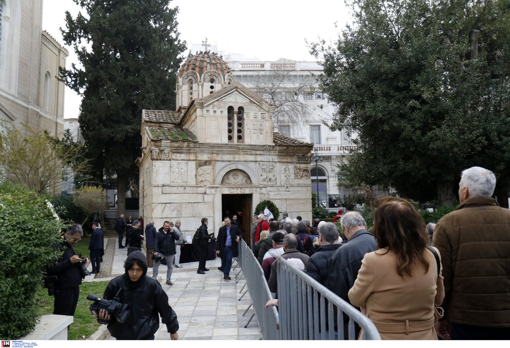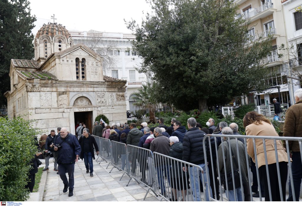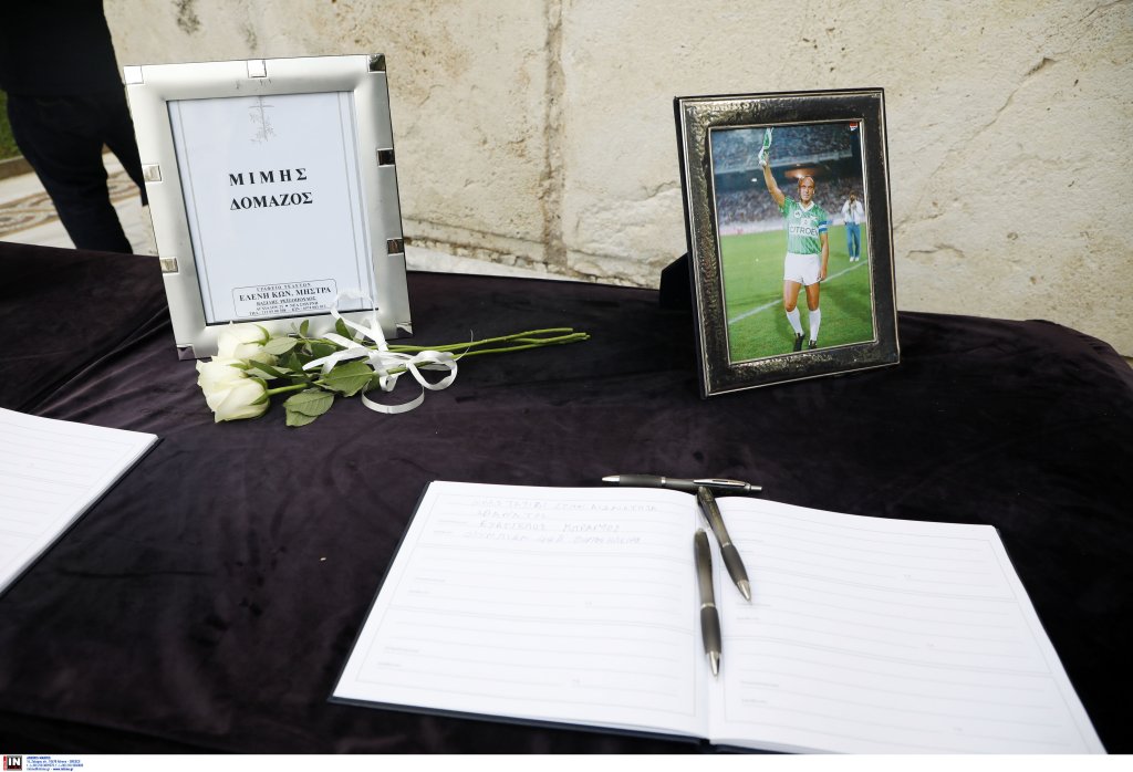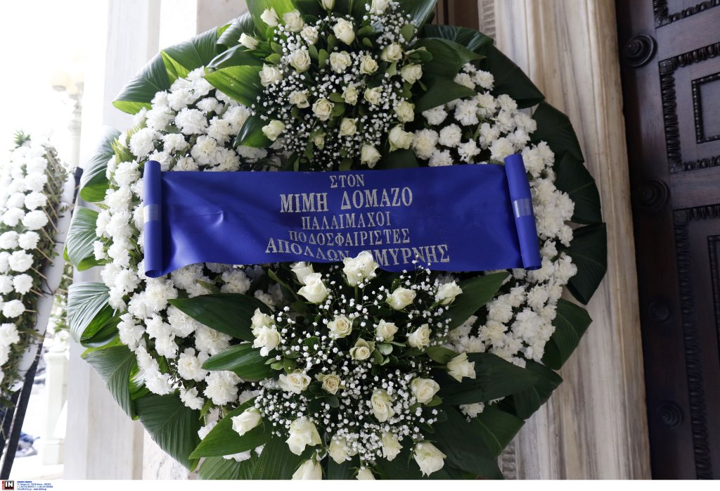 Πλήθος κόσμου συρρέει από το πρωί στη Μητρόπολη Αθηνών, για να αποχαιρετίσει τον Μίμη Δομάζο. Εκεί βρέθηκαν φίλοι, συγγενείς, συναθλητές και απλός κόσμος που αγάπησε τον μεγάλο παίκτη του ελληνικού ποδοσφαίρου.