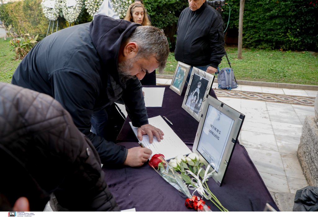 «Είναι πάρα πολύ δύσκολο. Ο πατέρας μου είναι εδώ, ευχαριστούμε όλο τον κόσμο, όλη η Ελλάδα θρηνεί, ο πατέρα μου είναι εδώ» είπε η Πόπη Δομάζου, η οποία ψέλλιζε «μπαμπά μου» ενώ η σορός του Μίμη Δομάζου έφτανε στη Λεωφόρο.