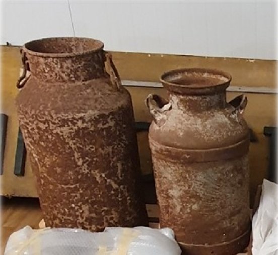 Στα μεταλλικά αντικείμενα περιλαμβάνονται φάτνες, πινακίδες με τα ονόματα των ζώων, στοιχεία παροχής νερού του παλαιότερου συστήματος ποτίσματος, στους χώρους φύλαξης, σιλό για την επεξεργασία, ανάμειξη και διανομή των ζωοτροφών. Στα αγροτικά εργαλεία, με ξύλινα και μεταλλικά στοιχεία συντήρησης, περιλαμβάνονται δικριάνια (γεωργικό εργαλείο που βοηθούσε στη διαδικασία του λιχνίσματος), δρεπάνι, τσουγκράνα, κόσκινο, νταμιτζάνα, ψεκαστήρας, δοχεία γάλακτος.