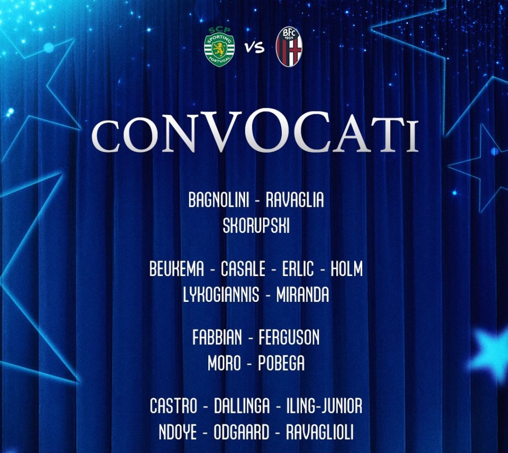 Η Μπολόνια αντιμετωπίζει την Τετάρτη στη Λισσαβόνας τη Σπόρτινγκ για την τελευταία αγωνιστική της League Phase του Champions League. Στην αποστολή της ιταλικής ομάδας μπήκε κανονικά ο Μπάμπης Λυκογιάννης. Ο Έλληνας μπακ, ο οποίος βρίσκεται στην κορυφή της λίστας της ΑΕΚ, αγωνίζεται βασικός το τελευταίο διάστημα παρότι και το ρεπορτάζ από την Ιταλία συμφωνεί ότι δεν έχει μέλλον στους «ροσομπλού».