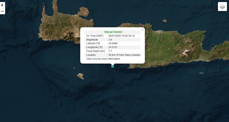Σεισμική δόνηση 3,6 βαθμών της κλίμακας Ρίχτερ σημειώθηκε είκοσι λεπτά πριν από τις 9 το βράδυ της Τρίτης, στη θαλάσσια περιοχή νότια του νομού Ηρακλείου.