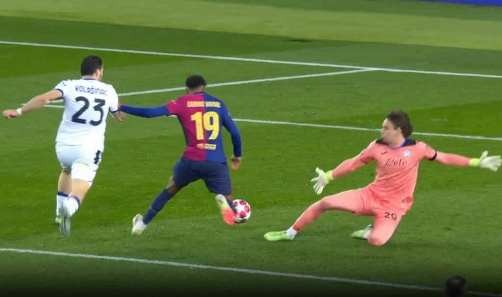 Οι «μπλαουγκράνα» είχαν μεγάλη ευκαιρία στο 12’ όταν ο Γιαμάλ έκανε εντυπωσιακό σουτ και η μπάλα πέρασε ελάχιστα άουτ. Στο επόμενο λεπτό ο Σέζνι έδιωξε δύσκολα το σουτ του Ρετέγκι. Η Αταλάντα σκόραρε στο 36’ με σουτ Τζαπακόστα μέσα από την περιοχή αλλά το γκολ ακυρώθηκε για οφσάιντ. Στις καθυστερήσεις του ημιχρόνου οι γηπεδούχοι συνδυάστηκαν εντυπωσιακά αλλά ο Ραφίνια δεν μπόρεσε να νικήσει τον Καρνεζέκι. Τελικά το σκορ άνοιξε στο 47’. Η Μπάρτσα έφυγε στην κόντρα, ο Γιαμάλ απέφυγε και τον γκολκίπερ της Αταλάντα και σε κενή εστία έκανε το 1-0. Οι Ιταλοί όμως απάντησαν στο 67’ όταν ο Έντερσον χόρεψε τον Γκάβι και με σουτ ισοφάρισε. Μόλις πέντε λεπτά μετά ο Αραούχο έπιασε από κοντά την κεφαλιά (μετά από εκτέλεση κόρνερ) και έγραψε το 2-1. H Αταλάντα όμως δεν το έβαλε κάτω. Στο 79’ ο Πάσαλιτς άντεξε την πίεση μέσα στην περιοχή και με πλασέ σκόραρε. Ο Σκαλβίνι βγήκε με φορείο στο 88' με σοβαρό τραυματισμό στον ώμο.