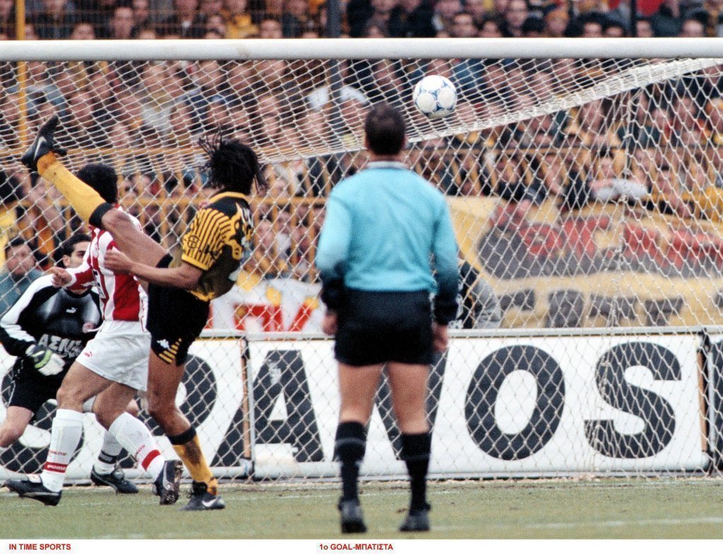 Βέβαια, ακόμα και με καλή ομάδα, ο Ολυμπιακός χρειαζόταν πάντα... βοήθεια. Όπως μπορείτε να δείτε και στο βίντεο, και σε αυτό τον αγώνα υπάρχει ένα πέναλτι που δεν δόθηκε (Γεωργάτος στον Μπατίστα) μετά το 1-0. Είχε προηγηθεί η ΑΕΚ με την κεφαλιά του Ντανιέλ Μπατίστα (που προερχόταν από δεκάμηνη απουσία!) στο 10' και ο διαιτητής Τεβεκέλης... φοβήθηκε μήπως έρθει αμέσως το 2-0.