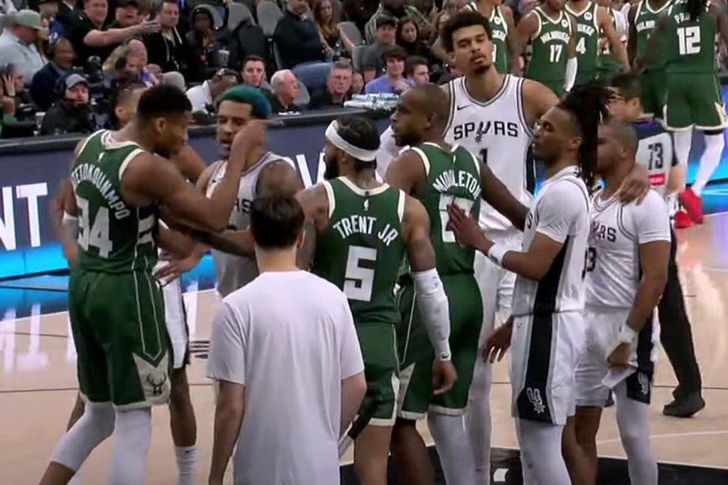 Με 3:46 λεπτά για το τέλος της αναμέτρησης και τους Σαν Αντόνιο Σπερς να προηγούνται με +20 των Μιλγουόκι Μπακς, προκλήθηκε ένταση στο παρκέ, με πρωταγωνιστές τους Γιάννη Αντετοκούνμπο και Κρις Πολ.