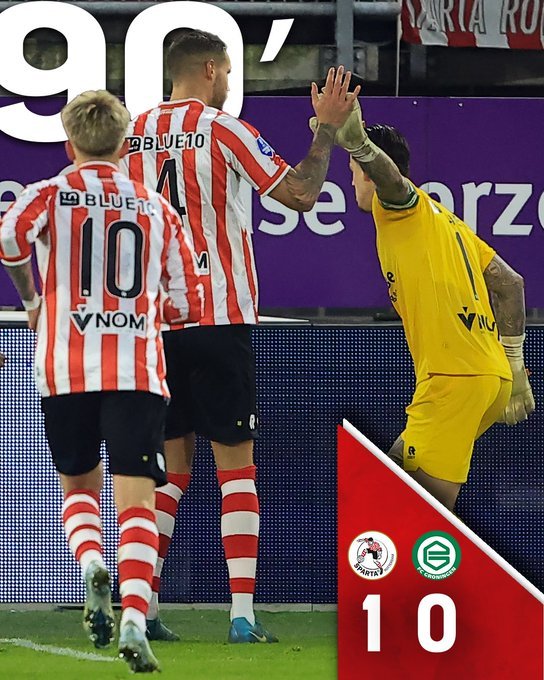Τη νίκη με 1-0 πανηγύρισε η Σπάρτα Ρότερνταμ επί της Χρόνινχεν και την πλησίασε στον πόντο. Το μοναδικό τέρμα της αναμέτρησης σημειώθηκε στο 60ο λεπτό από τον Λαούριτσεν, χαμένο πέναλτι για τους φιλοξενούμενους.