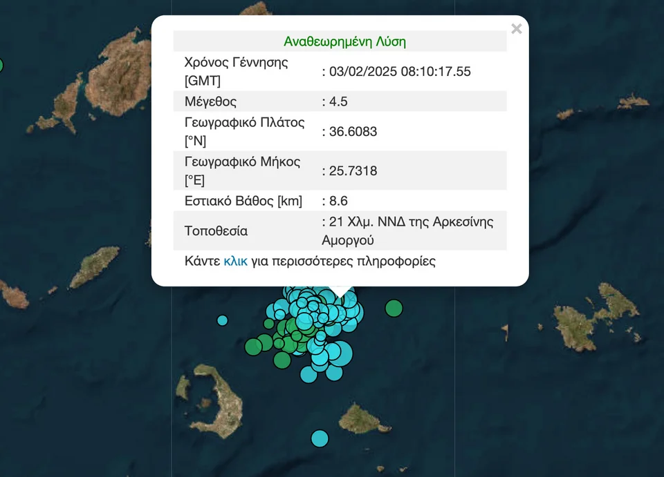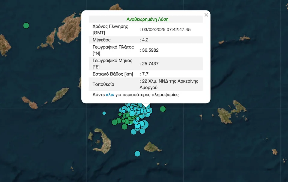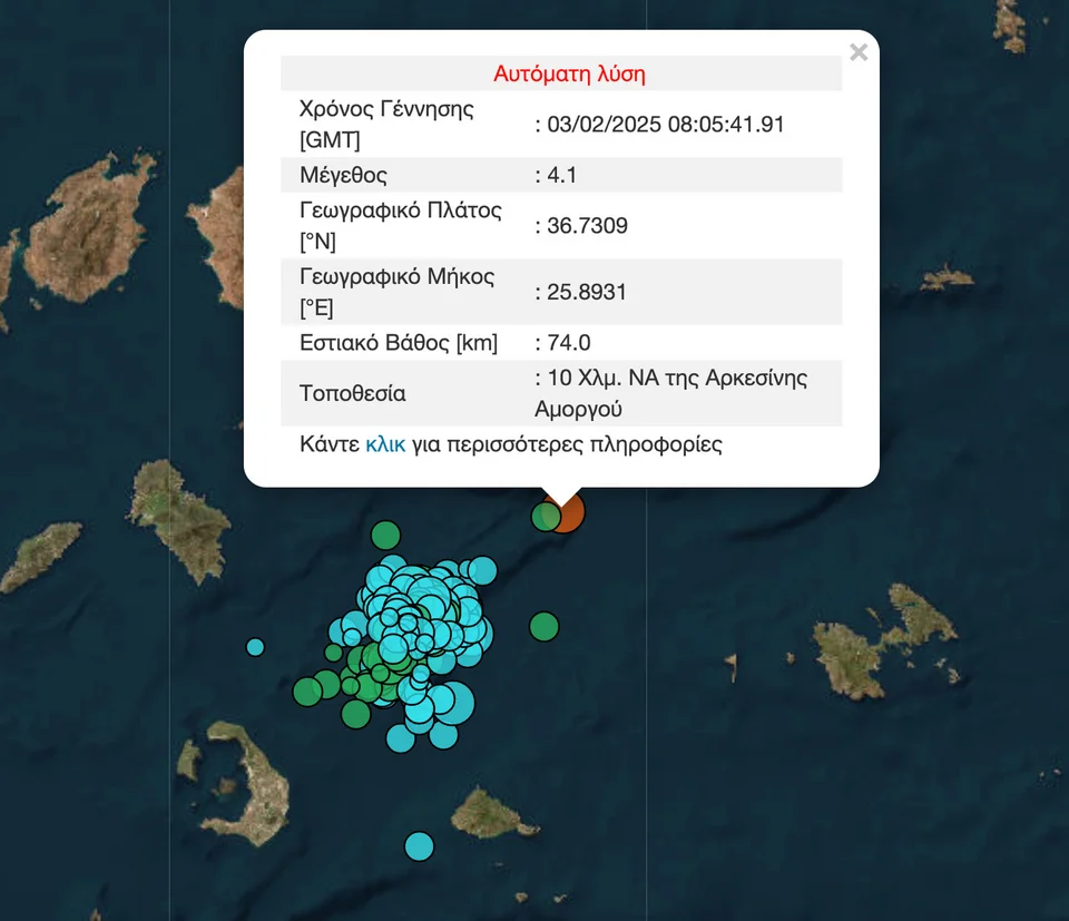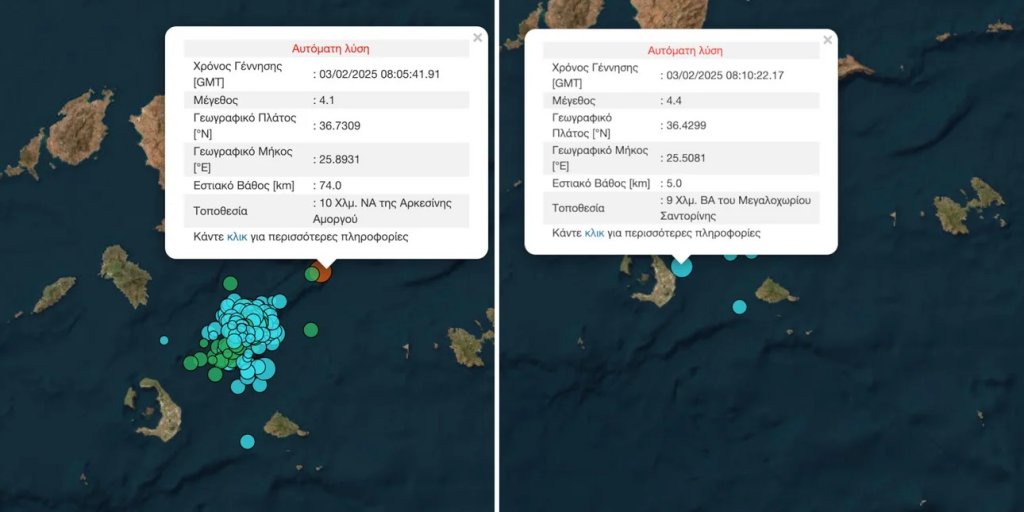 Μάλιστα, η αυτόματη λύση του Γεωδυναμικού Ινστιτούτου έδωσε αρχικά έναν από τους σεισμούς αυτούς στα 4,9 Ρίχτερ, πράγμα που σήμαινε ότι μιλούσαμε για τον ισχυρότερο αυτών των ημερών. Λίγο αργότερα αναθεώρησε στα 4,2 Ρίχτερ. Είχε προηγηθεί ένας σεισμός 4 Ρίχτερ.