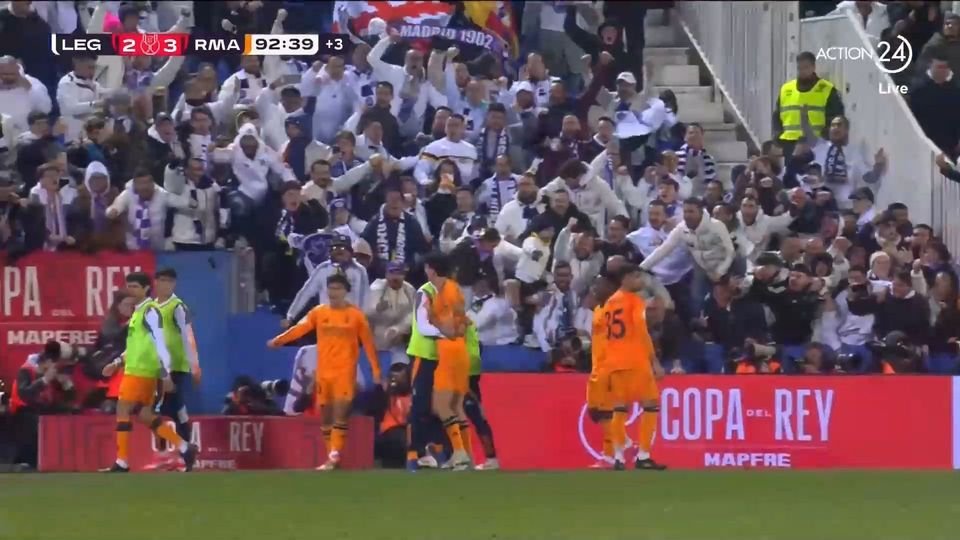 Με γκολ του 20χρονου Γκονθάλο Γκαρθία, στο 90'+3', η Ρεάλ Μαδρίτης πήρε την πρόκριση, 3-2 μέσα στην έδρα της Λεγανές, για τα ημιτελικά του Copa Del Rey. Από πάσα του Ροντρίγκο, ο Μόντριτς πλάσαρε τον γκολκίπερ της Λεγανές και έβαλε μπροστά στο σκορ τη Ρεάλ, στο 18ο λεπτό. Επτά λεπτά μετά το τέρμα του 38χρονου Κροάτη, ένας 18χρονος, ο Έντρικ έκανε το 0-2, μετά από ωραίο συνδυασμό τριών ποδοσφαιριστών της Ρεάλ. Στο 39', η Λεγανές μείωσε με εύστοχη εκτέλεση πέναλτι του Χουάν Κρουζ και, στο 59', ο ίδιος παίκτης ισοφάρισε σε 2-2. Ενδιάμεσα, η Ρεάλ είχε μεγάλες ευκαιρίες για το 1-3. Μετά την ισοφάριση, οι παίκτες του Αντσελότι πίεσαν, είχαν δοκάρι και στο τρίτο λεπτό των καθυστερήσεων, ο Γκαρθία χάρισε την πρόκριση στη Ρεάλ Μαδρίτης.