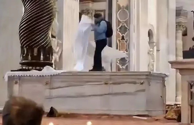 Τον γύρο του διαδικτύου κάνει τις τελευταίες ώρες ένα βίντεο που δείχνει έναν άνδρα με καλυμμένο το πρόσωπο, να έχει εισβάλει στην Βασιλική του Αγίου Πέτρου στο Βατικανό και να βανδαλίζει τον Ναό.