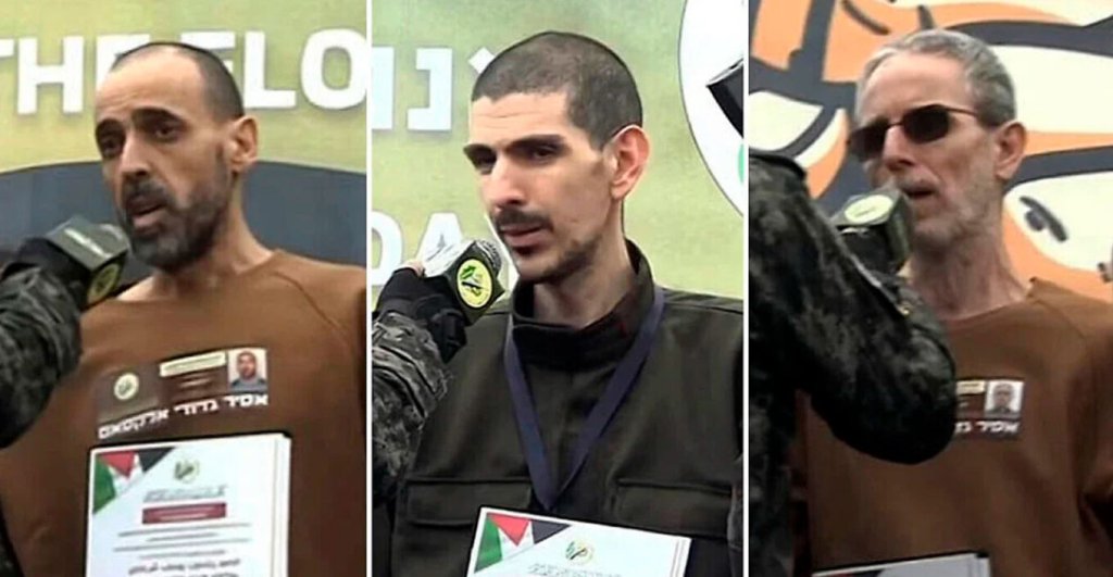 Hamas handed over three Israeli hostages whose emaciated appearance shocked Israelis following their release on live TV https://t.co/Rv3kHWQ6CD pic.twitter.com/GNAWD8wDrM
