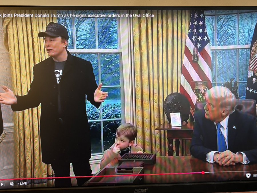 Σε βίντεο που κυκλοφορούν στα μέσα κοινωνικής δικτύωσης διακρίνεται ο γιος του Μασκ να σκαλίζει τη μύτη του και να σκουπίζει το χέρι του στο γραφείο Resolute του Τραμπ, το οποίο είχε χαρίσει η βασίλισσα Βικτωρία το 1880 στον τότε πρόεδρο των ΗΠΑ Ράδερφορντ Χέιζ και χρησιμοποιούν έκτοτε σχεδόν όλοι οι Αμερικανοί πρόεδροι.