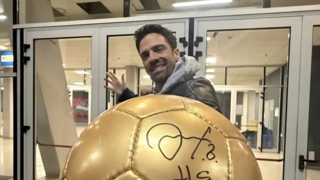 Μπροστά στο κοινό, ο γνωστός τραγουδιστής εμφανίστηκε, φορώντας φανέλα του Βούλγαρου παλαίμαχου άσου.