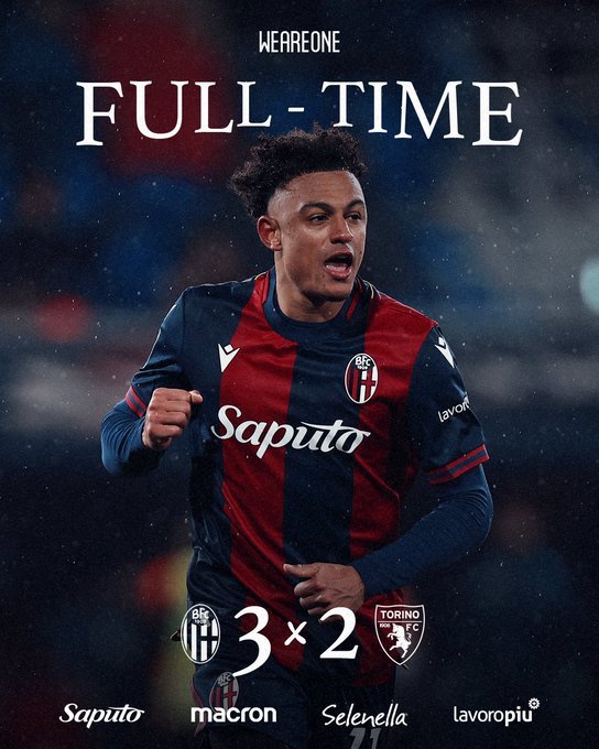 Σε ένα ματς με πέντε γκολ, ανατροπές, αρκετές φάσεις και πολύ ένταση, η Μπολόνια κέρδισε με 3-2 την Τορίνο στο πλαίσιο της 25ης αγωνιστικής της Serie A και βρέθηκε στο -1 απο τη Φιορεντίνα. Μοιραίος για την "Γκρανάτα" ο Μπιράγκι, που πέτυχε στο 90' αυτογκόλ.