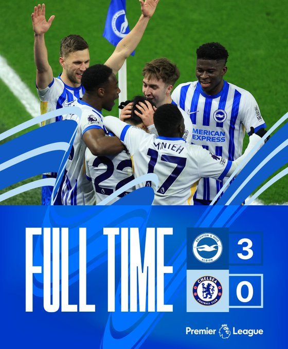 Μια Μπράιτον ορεξάτη, με ιδέες, φαντασία και με μαγικό δίδυμο Μιτόμα-Μίντε, απέναντι σε... κάποιους ποδοσφαιριστές που απλά φορούσαν τη φανέλα της Τσέλσι και ήταν παντελώς ανήμποροι να διαχειριστούν τις καταστάσεις που τους παρουσίασε η αναμέτρηση. Οι «γλάροι» του Χούρτζελερ ισοπέδωσαν τους Λονδρέζους φτάνοντας με άνεση στο τελικό 3-0, για να επιστρέψουν στα θετικά αποτελέσματα έπειτα από δυο σερί ήττες στο πρωτάθλημα. Δίχως σουτ στον στόχο τελείωσε την αναμέτρηση η ομάδα του Μαρέσκα!