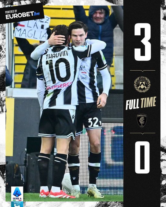 Η Ουντινέζε κέρδισε την Έμπολι με 3-0 και την έβαλε σε σοβαρούς μπελάδες.