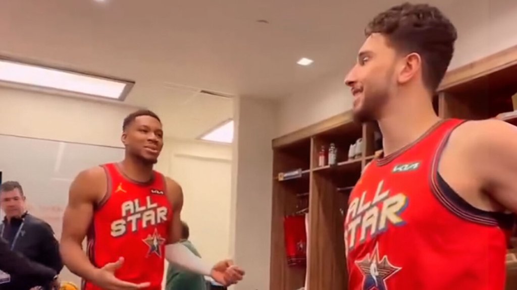 Ο τραυματισμός στην γάμπα δεν επέτρεψε στον Γιάννη Αντετοκούνμπο να αγωνιστεί στο εφετινό NBA All Star Game. Ωστόσο, ο Έλληνας φόργουορντ βρέθηκε στα αποδυτήρια, όπου έδωσε πολύ... υλικό για τα social media.