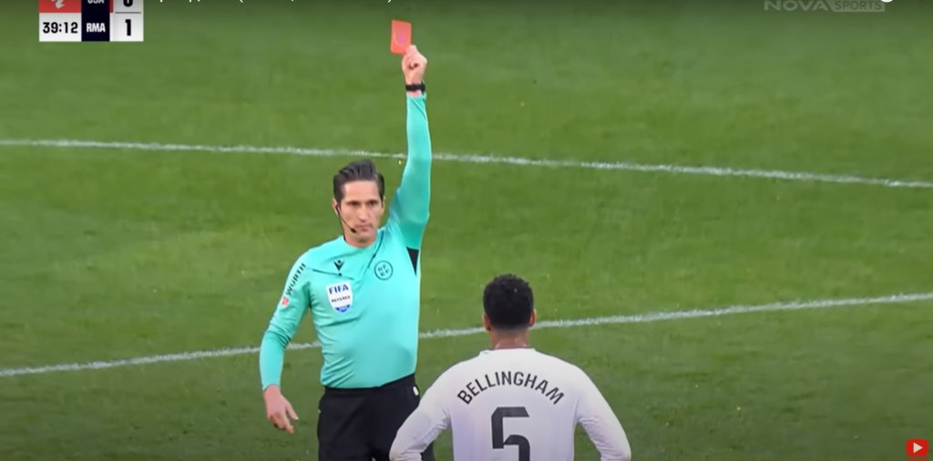 Ο ρέφερι Μουνουέρα Μοντέρο έδειξε, απευθείας, κόκκινη στον Άγγλο καθώς, όπως έγραψε στο φύλλο αγώνα, ο Μπέλινγκχαμ τον έβρισε.