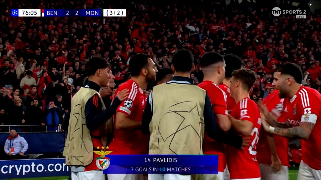 Μια ασίστ και ένα γκολ ήταν ο απολογισμός του Βαγγέλη Παυλίδη στο 3-3 της Μπενφίκα, κόντρα στη Μονακό, αποτέλεσμα που έδωσε, στην ομάδα της Λισαβόνας, το εισιτήριο για τους "16" του Champions League.