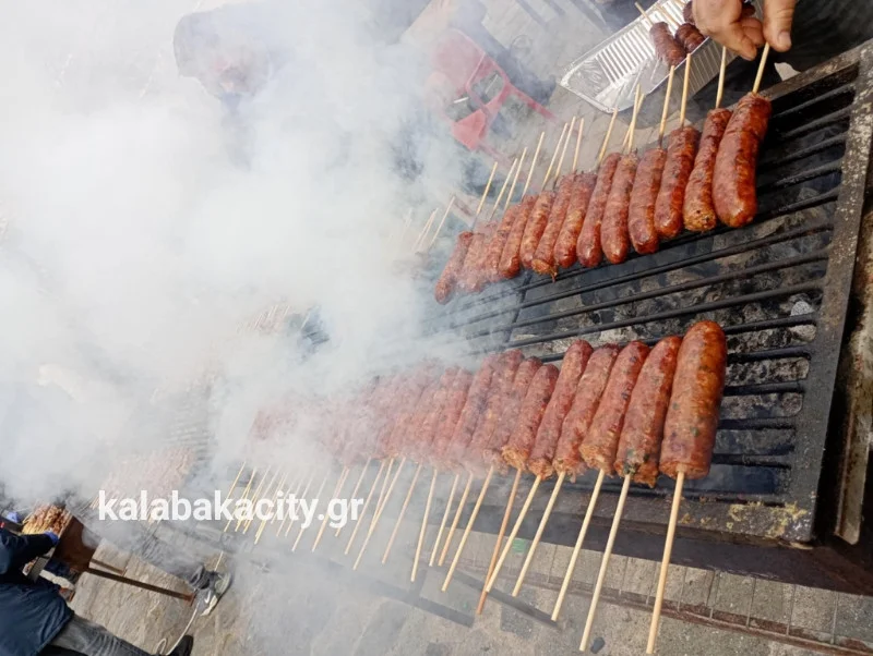 Οι ψησταριές πήραν μπροστά από νωρίς το πρωί, με τουλάχιστον 10.000 σουβλάκια και λουκάνικά. Μάλιστα, ο Δήμος Μετεώρων και ο Εμπορικός Σύλλογος Καλαμπάκας έχουν στήσει ένα μεγάλο γλέντι στην πλατεία Δημαρχείου.