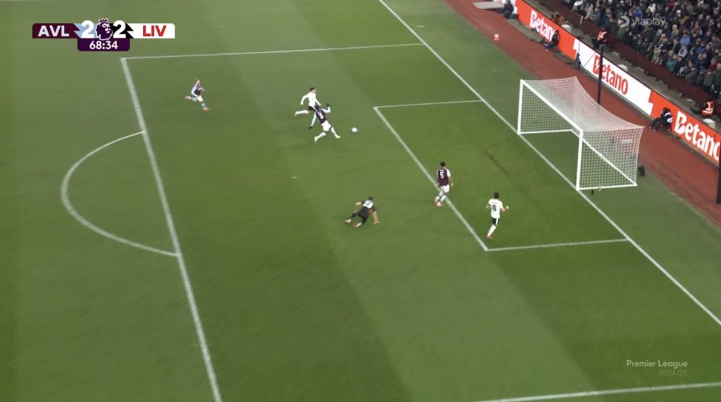 Στο 69ο λεπτό και με το ματς ισόπαλο, η Λίβερπουλ έχασε πολύ μεγάλη ευκαιρία να πάρει προβάδισμα, στην έδρα της Άστον Βίλα. Ο Ντάργουιν Νούνιες πήρε την μπάλα και, με εξουδετερωμένο τον γκολκίπερ Μαρτίνες, ο Ουρουγουανός επιθετικός της Λίβερπουλ αστόχησε προ κενής εστίας, στέλνοντας την μπάλα πάνω από τα δοκάρια.