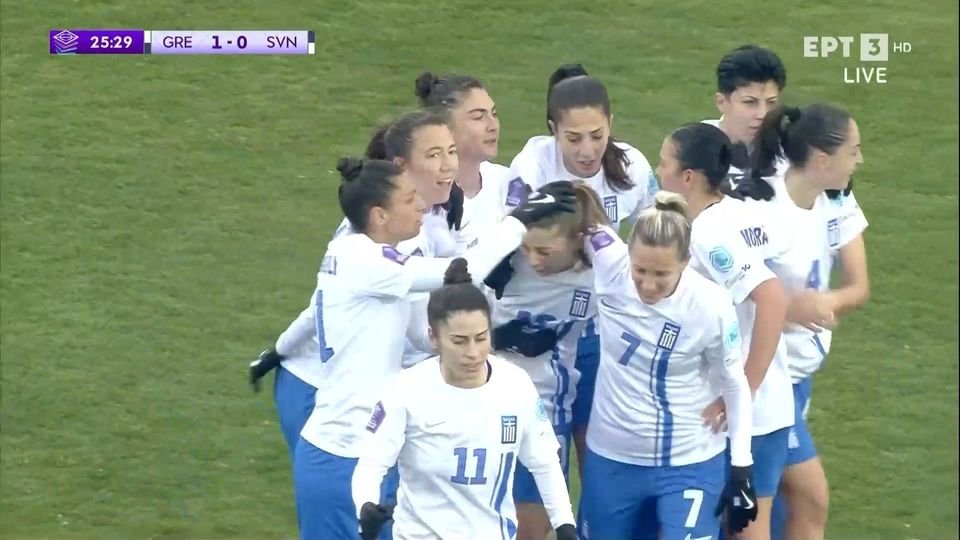 Η γαλανόλευκη πήρε κεφάλι στο σκορ με τη Σαρρή, που έβαλε ένα όμορφο γκολ με την μπάλα να παίρνει περίεργη τροχιά από την κόντρα που έβαλε αμυνόμενη της Σλοβενίας.