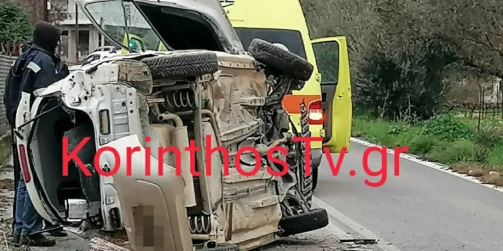 O οδηγός μεταφέρθηκε στο Νοσοκομείο της Κορίνθου.