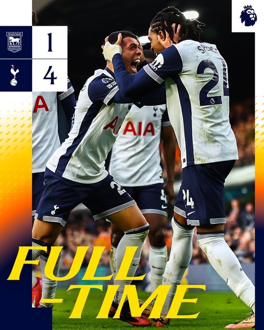 Η Τότεναμ πέρασε με 4-1 από την έδρα της σκληροτράχηλης Ίπσουιτς και μετρά τρία σερί τρίποντα.