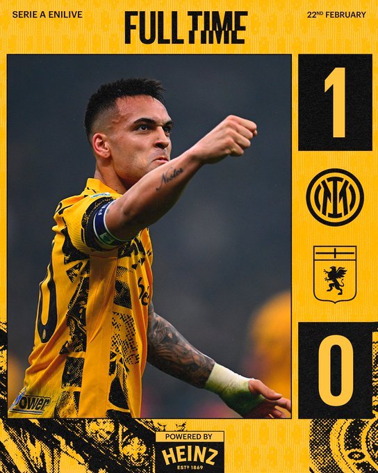 Η Ίντερ ζορίστηκε πολύ για 70 λεπτά κόντρα στην Τζένοα, ήταν ελάχιστα απειλητική αλλά ο Λαουτάρο Μαρτίνες έδωσε τη λύση και χάρισε στην ομάδα του μια τεράστια νίκη με 1-0. Στην κορυφή οι «νερατζούρι» αλλά με τη Νάπολι να έχει ένα ματς λιγότερο.