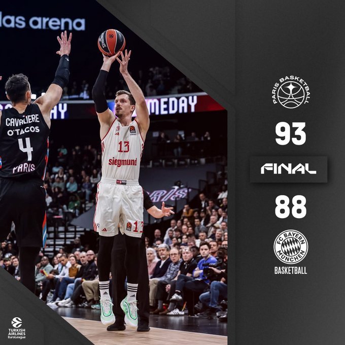 Σε ένα αρκετά όμορφο παιχνίδι, η Παρί κατάφερε να πάρει τη νίκη στην έδρα της κόντρα στην Μπάγερν Μονάχου (93-88) και συνεχίζει να ελπίζει για μία θέση στην πρώτη εξάδα.