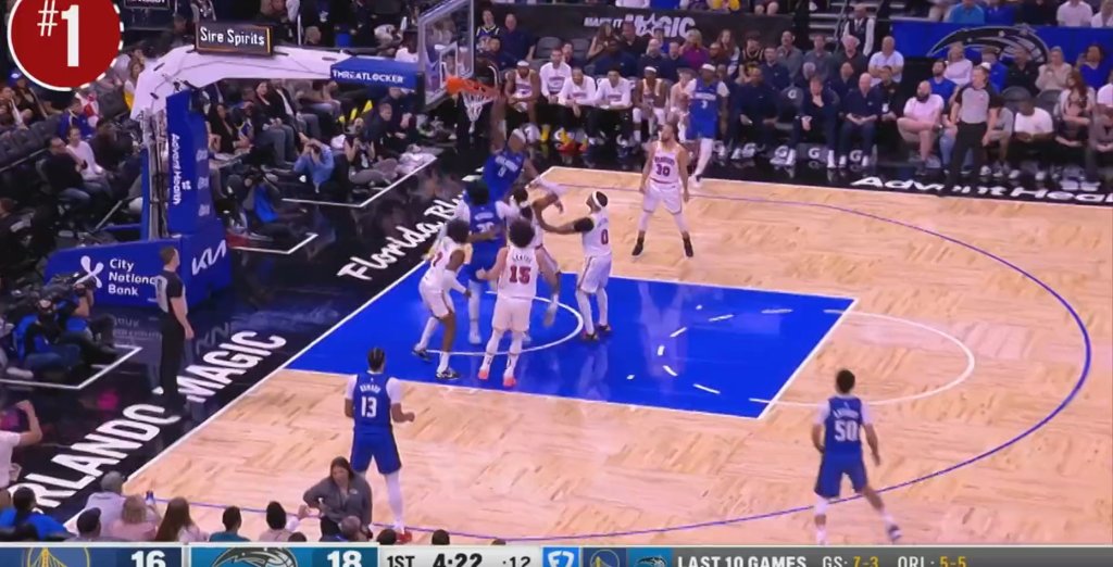 Μπροστά στο απλωμένο χέρι του Κέβιν Λούνεϊ των Γουόριορς, ο Πάολο Μπανκέρο των Μάτζικ κάρφωσε, θεαματικά, προσφέροντας την καλύτερη φάση, από τα πέντε παιχνίδια που έγιναν, τα ξημερώματα ώρα Ελλάδας, στο NBA.