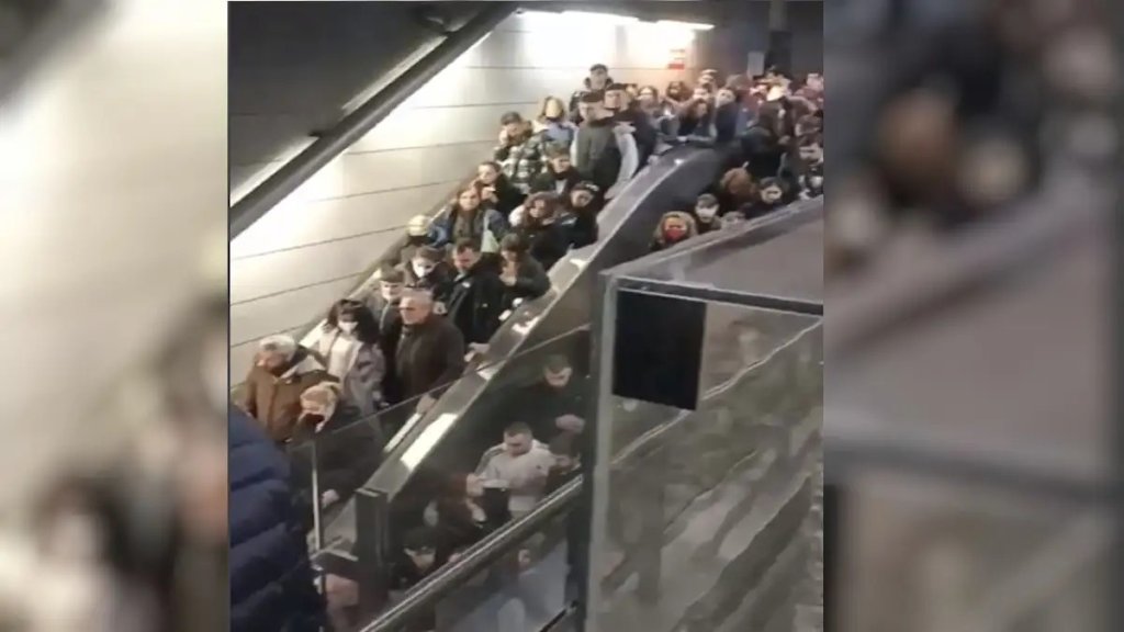 Οι εικόνες είναι εντυπωσιακές. Στην στάση Αγίας Μαρίνας, ο κόσμος είναι τόσος πολύς με αποτέλεσμα να έχουν σχηματιστεί τεράστιες ουρές στις ηλεκτρικές σκάλες.