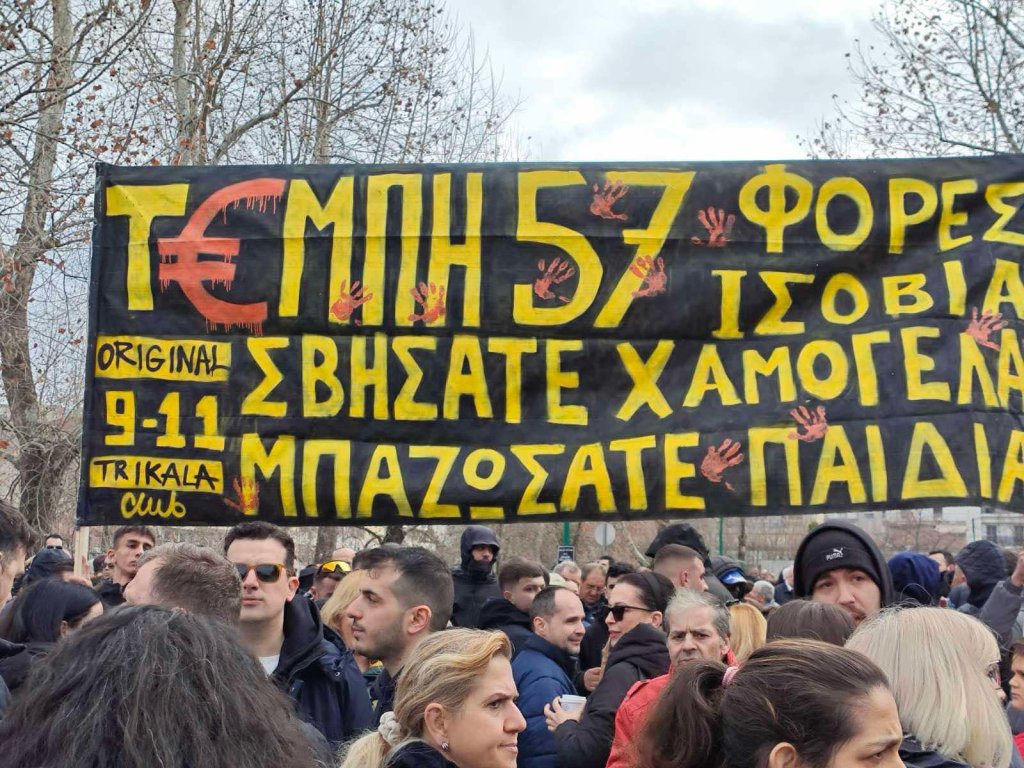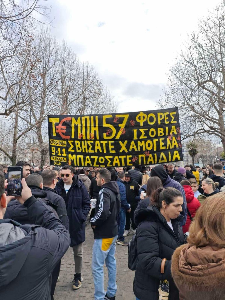 Σε όλες τις πόλεις της Ελλάδας ο ελληνικός λαός βγήκε την Παρασκευή (28/2) στους δρόμους. Και οι δρόμοι των Τρικάλων φυσικά πλημμύρισαν με κόσμο. Εκεί ήταν και οπαδοί της ΑΕΚ. Η ORIGINAL Τρικάλων σήκωσε πλακάτ που έγραφε: «57 φορές ισόβια. Σβήσατε χαμόγελα, μπαζώσατε παιδιά»