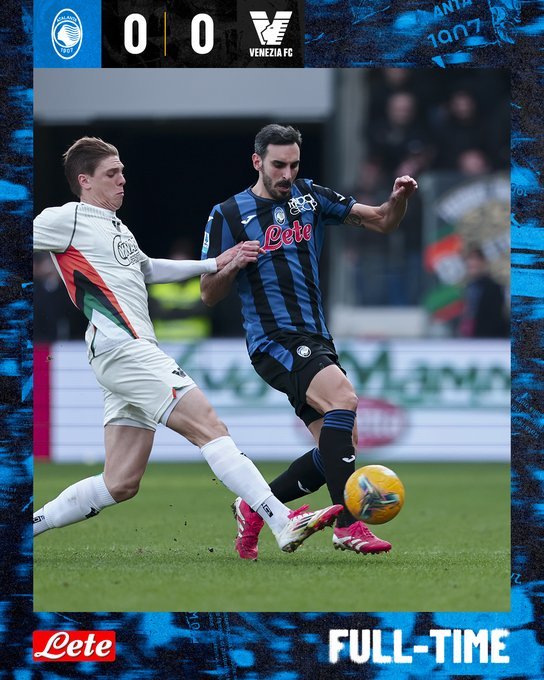 Την ευκαιρία να μπει γερά στο κόλπο του τίτλου πέταξε στα σκουπίδια η Αταλάντα. Η Dea στο 0-0 με τη Βενέτσια μέσα στο Μπέργκαμο και δεν κατάφερε να πιάσει κορυφή και να περιμένει το ντέρμπι ανάμεσα σε Νάπολι και Ίντερ. Σημαντικός βαθμός για τη Βενέτσια αλλά δεν φτάνει.