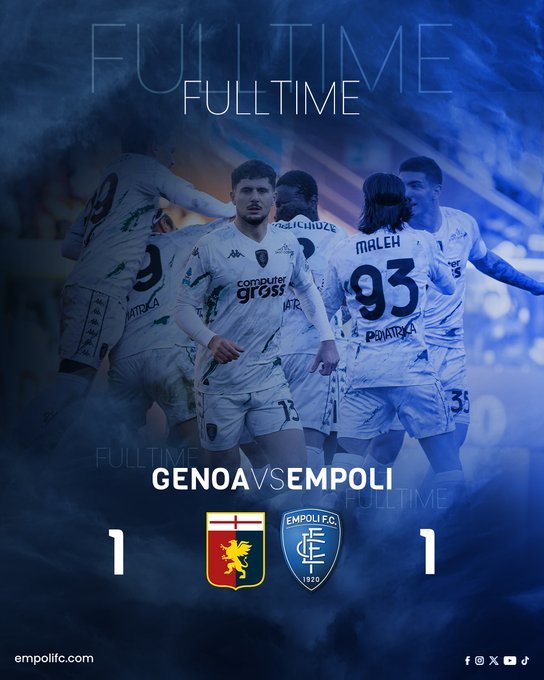 Η Έμπολι κρατούσε στα χέρια της ένα σπουδαίο διπλό αλλά μια γκάφα του τερματοφύλακας της, της στέρησε δύο βαθμούς καθώς κόλλησε στο 1-1 μέσα στην έδρα της Τζένοα και παρέμεινε στην επικίνδυνη ζώνη.