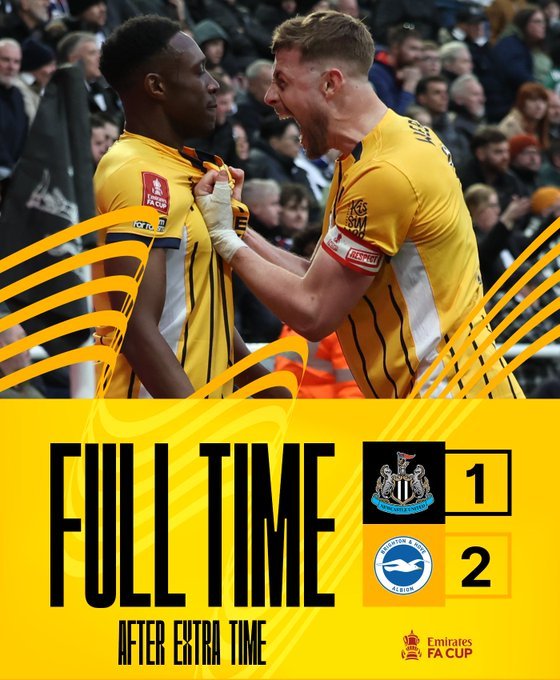 Πρόκριση στην παράταση μέσα στο «Σεντ Τζέιμς Παρκ» για την Μπράιτον, η οποία κέρδισε με 2-1 τη Νιούκαστλ και πέρασε στα προημιτελικά.