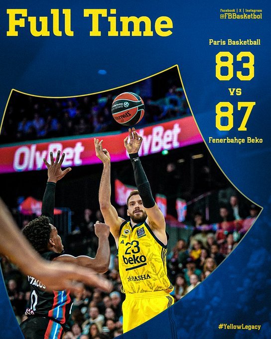 Η Φενέρμπαχτσε έφυγε με ένα σπουδαίο διπλό-τετράδας από το Παρίσι, επικρατώντας της Παρί με 87-83 στο εξ' αναβολής παιχνίδι της 17ης αγωνιστικής. Κομβικοί στο φινάλε Γκούντουριτς (16π.) και Μπόλντγουιν (14π.), τετραπλή ισοβαθμία από την 4η μέχρι την 7η θέση.