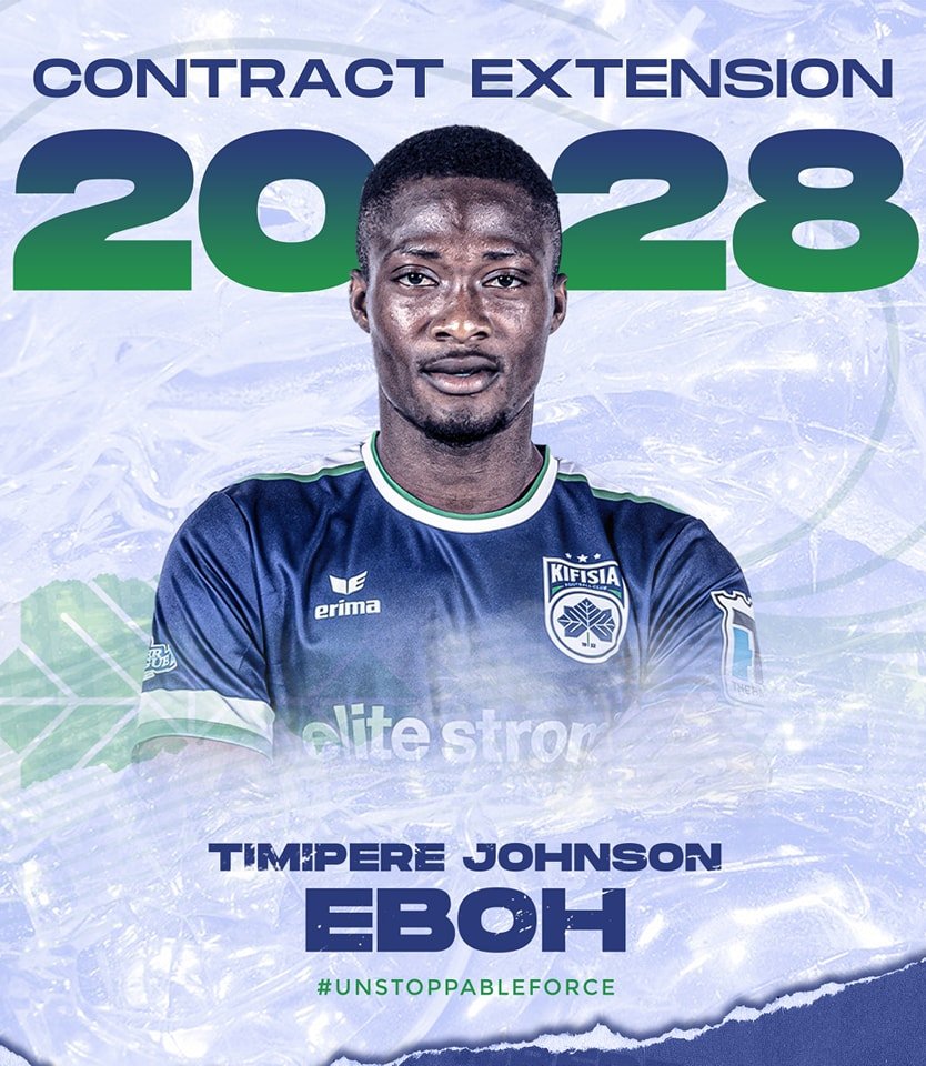 «Η ΠΑΕ Κηφισιά ανακοινώνει την απόκτηση του Τζόνσον Τιμίπερε Έμπο με μεταγραφή από την ΠΑΕ ASTERAS AKTOR και την επέκταση του συμβολαίου του έως το καλοκαίρι του 2028».