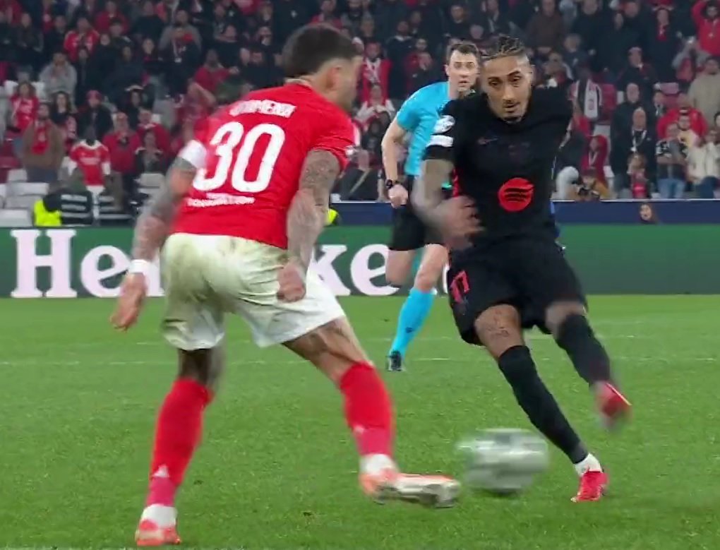 Στο 20στό δευτερόλεπτο οι Πορτογάλοι απείλησαν με πλασέ του Ακτούρκογλου που έδιωξε ο Σέζνι. Η Μπαρτσελόνα απάντησε στο 13’ με τριπλή ευκαιρία όταν Όλμο, Λεβαντόφσκι και τελικά Γιαμάλ δεν κατάφεραν να νικήσουν τον Τρουμπίν. Στο 22’ οι αριθμητική ισορροπία διαταράχθηκε όταν ο Κουμπαρσί είδε κόκκινη για μαρκάρισμα στον Παυλίδη ο οποίος έβγαινε σε θέση βολής. Το φάουλ εκτέλεσε ο Κιοκτσού με τον Σέζνι να πέφτει και να διώχνει. Στο 43’ ο Ακτούρκογλου έπιασε την κεφαλιά αλλά ο γκολκίπερ της Μπαρτσελόνα αντέδρασε σωστά. Στις καθυστερήσεις του ημιχρόνου ο Ραφίνια βγήκε τετ α τετ, από πλάγια θέση. Δεν εκτέλεσε κι έψαξε πάσα στον Γιαμάλ με τον Καρέρας να κόβει.