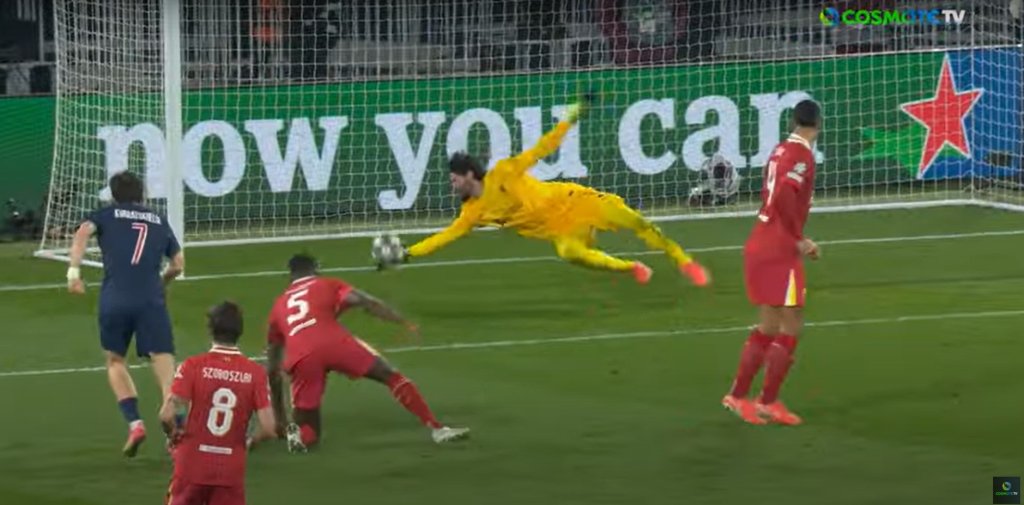 Με χέρια, πόδια και κορμί, ο Άλισον σταμάτησε όλες τις επιθετικές προσπάθειες των παικτών της Παρί Σεν Ζερμέν, κρατώντας ανέπαφη την εστία της Λίβερπουλ, στην πρώτη μάχη για τους "16" του Champions League.