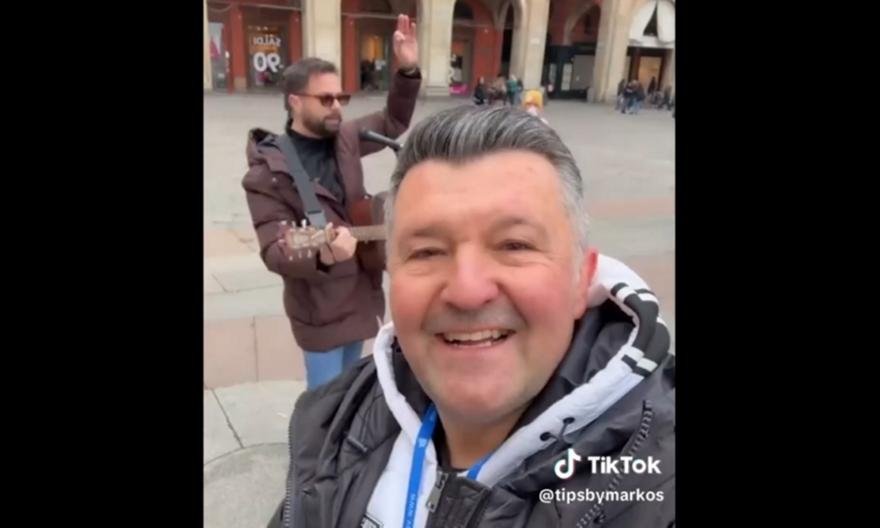 Ο Ηλίας Βρεττός πήρε την κιθάρα από πλανόδιο μουσικό και τραγούδησε στην Πιάτσα Ματζόρε!