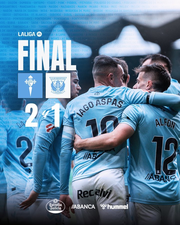 Στις πέντε τελευταίες αγωνιστικές, η Θέλτα έχει τρεις νίκες, δυο ισοπαλίες και βρίσκεται μια ανάσα από την πρώτη εξάδα, που δίνει εισιτήριο για ευρωπαϊκές διοργανώσεις. Στα πλαίσια της 27ης αγωνιστικής, υποδέχτηκε τη Λεγανές, βρέθηκε πίσω στο σκορ, αλλά, πέτυχε την ανατροπή πριν το ημίχρονο, διαχειρίστηκε το προβάδισμά της, στην επανάληψη, και, με το τελικό 2-1, έκανε άλλο ένα αποφασιστικό βήμα προκειμένου να τερματίσει στο Top-6, για πρώτη φορά από τη σεζόν 2016-2017.