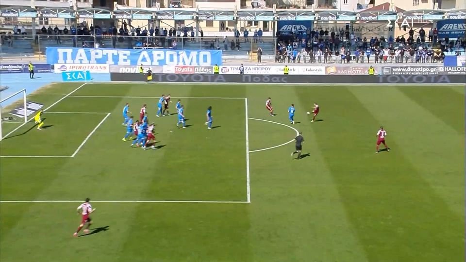 Ο ΠΑΣ Γιάννινα ισοφάρισε με πέναλτι που κέρδισε ο Λεό στο 37ο λεπτό του αγώνα, όταν έφυγε στην πλάτη της άμυνας των φιλοξενούμενων, αποφεύγοντας τον τελευταίο αμυντικό τους, άνοιξε την μπάλα λίγο παραπάνω, ο Περντρέου θεώρησε πως προλάβαινε, όμως ο Γάλλος φορ τσίμπησε κι εκεί την μπάλα και στην συνέχεια ο Αλβανός κίπερ της Λάρισας τον ανέτρεψε. Ο Χάινριχ ανέλαβε την εκτέλεση και εύστοχη κάνοντας το 1-1.