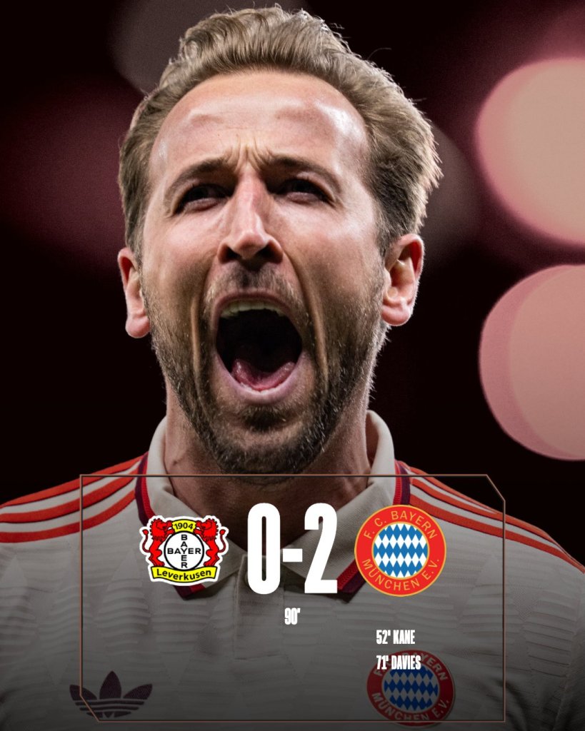 Τελικά στο 52ο λεπτό ο Κίμιχ εκτέλεσε γλυκά ένα φάουλ και ο Κέιν κατέβασε στην πλάτη της άμυνας της Λεβερκούζεν κι εξ επαφής πλάσαρε για το 0-1.