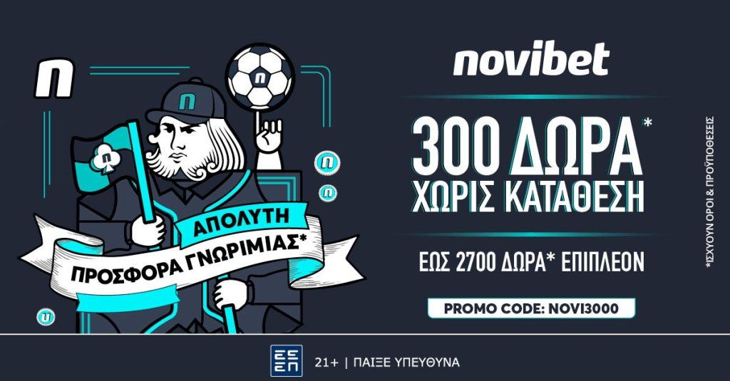 Novibet ΕΠΑΘΑ με Super Προσφορά* Γνωριμίας* 21+ | ΑΡΜΟΔΙΟΣ ΡΥΘΜΙΣΤΗΣ: ΕΕΕΠ | ΚΙΝΔΥΝΟΣ ΕΘΙΣΜΟΥ & ΑΠΩΛΕΙΑΣ ΠΕΡΙΟΥΣΙΑΣ | ΓΡΑΜΜΗ ΒΟΗΘΕΙΑΣ ΚΕΘΕΑ: 2109237777 | ΠΑΙΞΕ ΥΠΕΥΘΥΝΑ