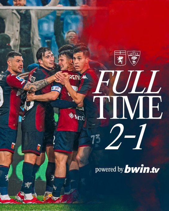 Η Τζένοα επικράτησε 2-1 της Λέτσε και δείχνει να ξεμπερδεύει με την υπόθεση παραμονή. Μεγάλοι πρωταγωνιστές για τον σύλλογο της Γένοβας οι Μιρέτι(2 γκολ) και Μαλινόφσκι(2 ασίστ). Στο +3 απο την επικίνδυνη ζώνη οι φιλοξενούμενοι.