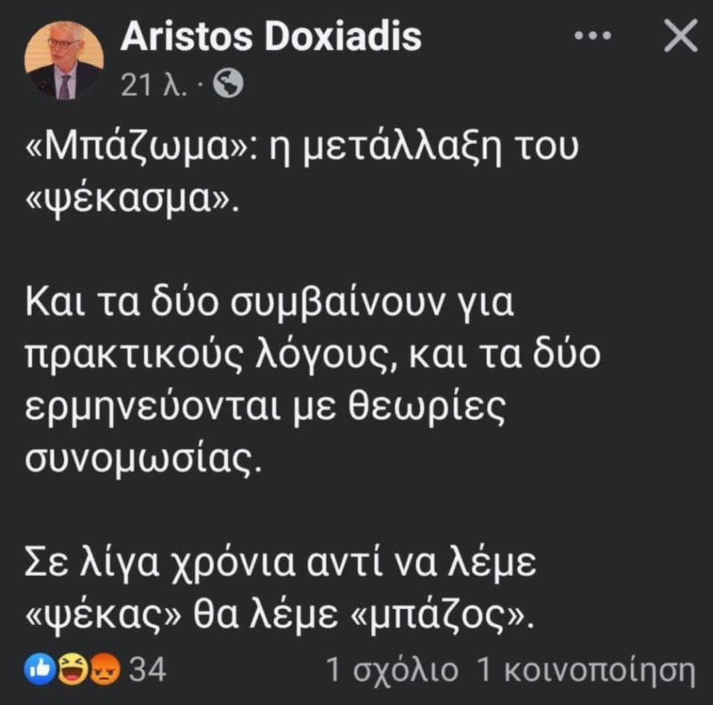 Η ανάρτηση του Αρίστου Δοξιάδη: