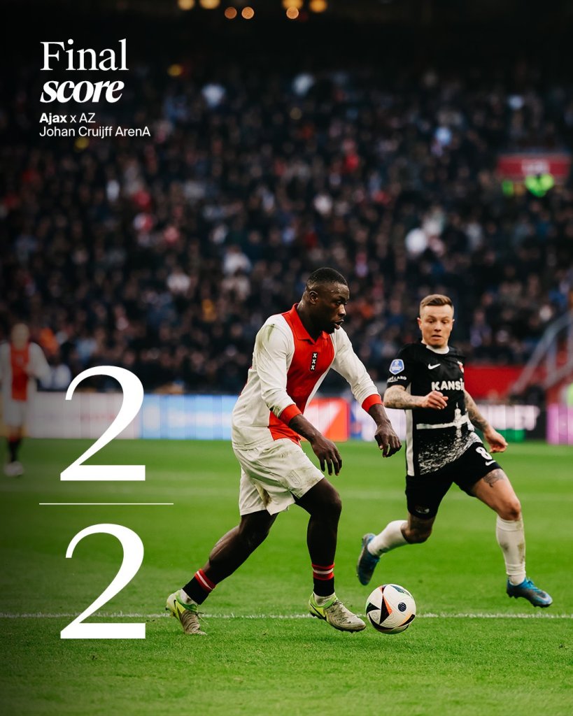 Η Άλκμααρ πήγε στη "Γιόχαν Κρόιφ Αρένα" και χάλασε το πάρτι γενεθλίων του Άγιαξ, για τα 125 χρόνια ζωής της ομάδας. Οι δυο ομάδες έμειναν στο 2-2, με την Άλκμααρ να ανοίγει το σκορ, στο 52ο λεπτό, με τον Μπουρμάαστερ. Έξι λεπτά αργότερα, ο Άγιαξ ισοφάρισε με τον Γκάι, ο οποίος στο 74΄ αποβλήθηκε με απευθείας κόκκινη κάρτα σε μια φάση στην οποία ενεπλάκη και ο Πενέτρα που επίσης αποβλήθηκε. Άγιαξ και Άλκμααρ έμειναν με δέκα παίκτες, με την Άλκμααρ να παίρνει, ξανά, προβάδισμα με τον Σαντίκ, στο 83'. Τελικά, ο Άγιαξ κατάφερε να διατηρήσει το αήττητο, εντός συνόρων, ισοφαρίζοντας με τον Έντβαρντσεν, δυο λεπτά αργότερα. Με 10 νίκες και 1 ισοπαλία, στις 11 τελευταίες αγωνιστικές, ο Άγιαξ βρίσκεται στην κορυφή, στο +6 από την Αϊντχόφεν.