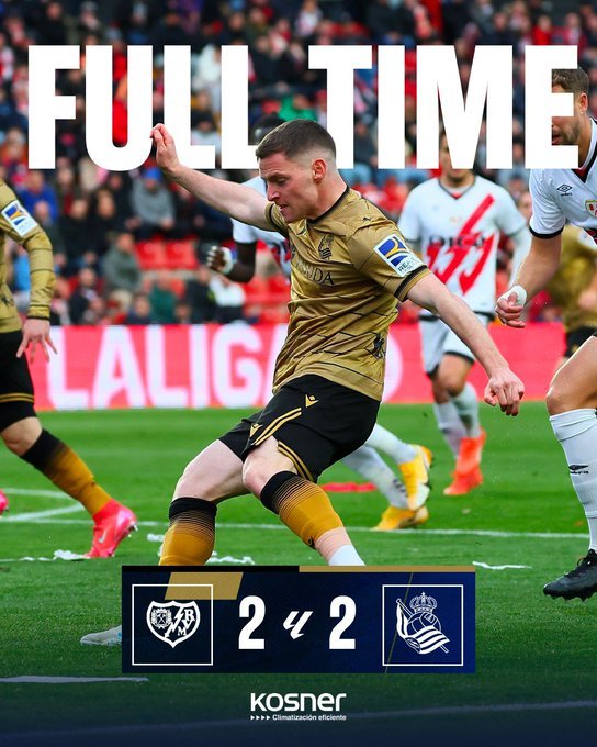 Ράγιο Βαγιεκάνο και Ρεάλ Σοσιεδάδ αναδείχθηκαν ισόπαλες 2-2 στο πλαίσιο της 28ης αγωνιστικής της La Liga, αποτέλεσμα που δεν βολεύει καμία από τις δύο, καθώς αμφότερες έχασαν κι άλλο έδαφος στη μάχη για ένα ευρωπαϊκό εισιτήριο.